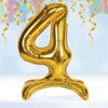 Let your Party Decorations stand out with these gold foil balloon numbers. These balloons are self-standing and include blow straws to allow you to easily inflate them. Use them for a table or shelf display. Inflate with air only. Each numbered balloon measures 26 inches tall which will make them very visible from across the room. The bases measure 19 inches wide by 13 inches deep creating a sturdy base to keep them standing up. Pair them up with other number foil balloons to create ages or years. Perfect for Birthday Party Decorations, Graduation Party Decor, and New Year's Eve Celebrations.