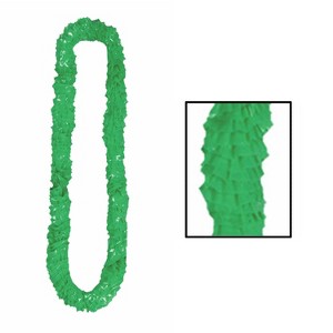 Poly Leis. Includes 144 green soft,twist poly leis per package. These green leis are made of plastic and measure 11/2 inches thick by 36 inches long. They are perfect to hand out to guests at a luau party!.. Perfect for enhancing any celebration or event. Designed for high-quality, easy use, this product adds instant fun and color to your gathering. Whether for holidays, birthdays, or special events, it provides a festive atmosphere!.
