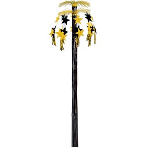 Cascade Fountain measures 8 feet tall! Dress up your party with this shiny metallic black and gold Star Cascade Fountain. This beautiful hanging decoration contains metallic streamers topped with a cascade of metallic black and gold stars. A perfect decoration for all your decorating needs!