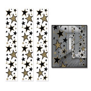 These Awards Style Party Panels are made of clear thin plastic and printed with black and gold stars in assorted sizes. Each panel measures 12 inches wide by 6 feet tall. Hang up to decorate for an Awards Night or New Years party!.. Perfect for enhancing any celebration or event. Designed for high-quality, easy use, this product adds instant fun and color to your gathering. Whether for holidays, birthdays, or special events, it provides a festive atmosphere!.