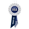 These two USA Rosette Award Ribbons are perfect Patriotic D�cor for a Fourth Of July Party or event. The ribbons are made of shiny satin fabric and have metal pin backs so that you can pin them onto something. Each Patriotic Ribbon measures 6.5 inches tall by 3.25 inches wide. Hand these nice ribbons out as Patriotic Theme Party Favors at your upcoming Labor Day party.. Perfect for enhancing any celebration or event. Designed for high-quality, easy use, this product adds instant fun and color to your gathering. Whether for holidays, birthdays, or special events, it provides a festive atmosphere!.