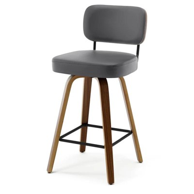 Bekrvio 26" Counter Height Bar Stools Set of 1 - Modern, with Back, C-Shaped Metal Frame, Upholstered Faux Leather for Kitchen Counter, Home Bar,Grey
