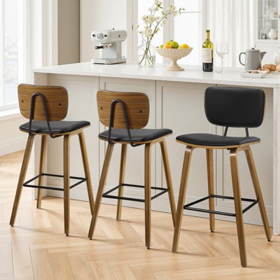 Bekrvio 26" Counter Height Bar Stools Set of 3 - Modern Velvet, with Back, C-Shaped Metal Frame, Upholstered for Kitchen Island, Home Bar,Black