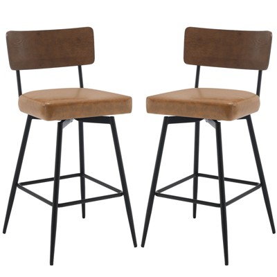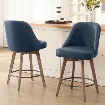 Bekrvio 26" Faux Leather Swivel Bar Stools Set of 1/2/3/4,Mid Century Modern Counter Chairs with Wood Legs and Curved Back for Kitchen Island