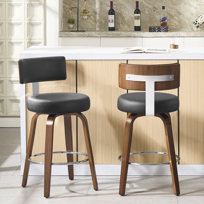 Bekrvio 26" Counter Height Swivel Bar Stools Set of 3 - Upholstered Faux Leather, Wood Backs & Metal Legs, Counter Stools for Kitchen Island,Black