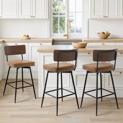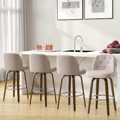 Bekrvio 26" Swivel Counter Height Bar Stools with Backs, Linen Fabric Upholstered,Walnut Wood Legs -Mid-Century Modern Set of 2 Barstools, Sand