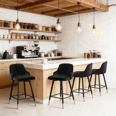 Sit back and relax—literally. Plush high-density foam cushions and a 13” backrest give ergonomic support for long meals, casual work, or those epic Netflix marathons. The armless design keeps seating roomy and unrestricted, while grid-tufted faux leather and gold-tipped legs add a mid-century modern flair that instantly elevates any kitchen island, home bar, or counter space. Easy to wipe clean, waterproof PU leather ensures spills won’t cramp your style. At 26” tall, these stools fit perfectly with standard counters and assemble in just 5–10 minutes. Stylish, sturdy, and surprisingly comfortable—because your bar setup deserves a little luxury without the hassle.