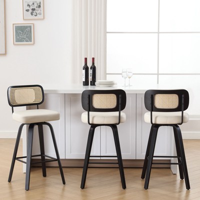 Bring your kitchen island or home bar to life with the Bekrvio swivel counter height bar stool, designed to give you that cozy “sit and stay a while” comfort every busy home needs. The 26" counter stool height pairs perfectly with standard 36–40" counters, while the thick padded seat and smooth PU leather backrest offer supportive cushioning for weeknight dinners, quick breakfasts, or late-night chats. A sturdy bent-wood frame, metal footrest, and FSC-certified wood construction create a solid base that feels stable—not wobbly—supporting up to 300 lb with ease. The 360° swivel lets you turn effortlessly to reach the countertop or join the conversation, and adjustable feet keep these black kitchen island chairs level on wood or tile floors. With its clean mid-century design and faux leather finish, this Bekrvio swivel bar stool doubles as both comfortable seating and modern décor, making it an easy upgrade for any dining room, breakfast bar, or small apartment kitchen.