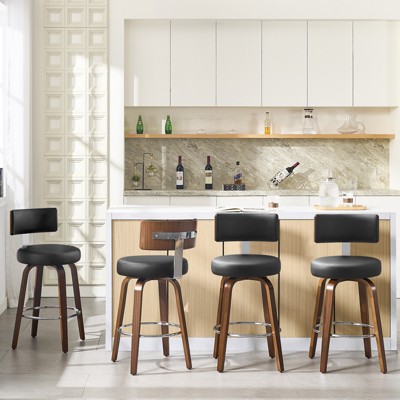 From casual breakfasts to long conversations at the kitchen island, this high-back swivel bar stool is designed to keep you comfortably seated longer. With an wide, armchair-style seat measuring 23.6" overall and 18.9" of sitting space, it offers a noticeably more spacious, enveloping sit than standard bar stools. A solid Thai rubberwood frame provides dependable strength, while the sculpted high back and supportive armrests gently cradle your body for a relaxed, secure feel. The generously cushioned seat features a multi-layer construction that stays plush and supportive over time, paired with a smooth 360° swivel that lets you turn naturally without shifting your posture. Finished in vintage-textured PU leather, this bar stool brings warmth, durability, and effortless comfort to kitchen islands, home bars, or open dining spaces.