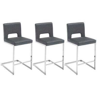 Bekrvio 29'' Swivel Barstools with Wood Back & Metal Frame, Upholstered Faux Leather Stools Bar Height Chairs for Kitchen Island, Set of 3 Griege
