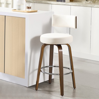 - 360° Swivel: Enjoy the convenience of smooth rotation with our 360-degree swivel bar stools. The swivel counter height stools feature a curved wooden frame, ensuring outstanding strength and durability (up to 300 lbs). A rectangular metal footrest offers comfortable support for your feet, while four adjustable foot pads ensure the stool remains level and stable on any type of flooring.