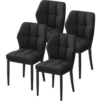 Bekrvio Mid Century Modern Dining Chairs, Upholstered Leather Armless Chairs with Checkered Pattern Back, for Kitchen & Dining Room