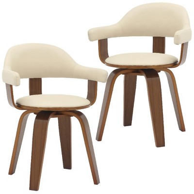 Bekrvio Swivel Dining Chairs Set of 2, with Arms Beechwood Legs High Back Mid Century Modern Leather Upholstered Kitchen Chairs for Living Room, Brown