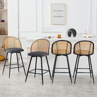 Bekrvio Swivel Counter Height Bar Stools, 29" Faux Leather Upholstered with Back & Bent Wood Legs, Gray for Kitchen Counter