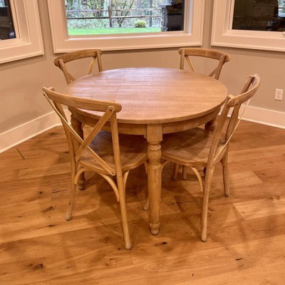 I love this table! It’s a perfect color and style. I took a star off because it wobbles a little. (fixed with felt pads) I also added 4 coats of matte polyurethane finish to protect the top because I can tell it would stain. Overall I am very happy and had been searching for a table forever. I bought Advantage Driftwood X-back Chairs from another website and they matched perfectly!