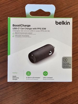 Get more out of your commute. Fast charge an iPhone, Samsung, tablet, and other smartphones while with our compact and powerful BOOST↑CHARGE Car Charger. Plug into USB-C PD 3.0 certified power through its USB-C port, fast charging an iPhone 14 Pro from 0-50% in as little as 23 minutes or a Galaxy S23 Ultra from 0-50% in 24 minutes. This car charger is engineered with PPS technology, delivering dynamic power tailored to the device it's connected to, up to 30W for iPhone, Samsung, and more, making it a safe and powerful option for a variety of devices. NOTE: Charging cable not included. Belkin is an established accessories market leader creating high-quality, innovative tech solutions for over 35 years.