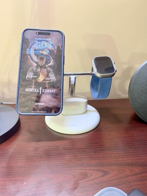 3-IN-1 LIGHTNING-FAST CHARGING: Place your phone on this stand for up to 15W fast charging Qi2 for iPhone plus MagSafe compatibility, even with a case up to 3mm on. Plus, get 5W of simultaneous fast charging for AirPods and Apple Watch Series.