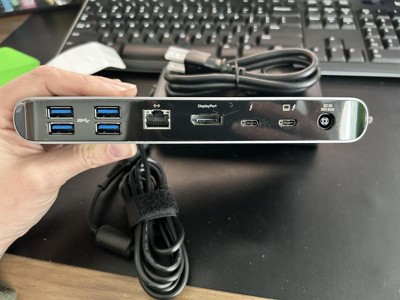[This review was collected as part of a promotion.] I've had this thing for about a month and have spent so much money on different cables in order to try and get it to work. Why it is using an old school display port is beyond me. I have tried everything and can't get this to work like a true docking station as it claims.