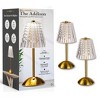 Elevate your ambience with the Bell + Howell Addison Cordless Rechargeable Table Lamp 2‑Pack—featuring elegant brushed gold metal construction and faux crystal shades. This premium wireless LED table lamp duo offers flexible lighting with three color temperatures (warm, white, daylight) via intuitive touch control. Each lamp includes a built-in rechargeable battery (up to 5.5 hours runtime) and charges quickly via USB‑C. Sleek and portable at 12″ tall, these energy-efficient metal lamps are ideal for bedrooms, desks, nightstands, dining tables, or even outdoor spaces. Enjoy cordless convenience, adjustable brightness, and stylish design in one versatile lighting solution.