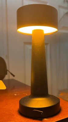 [This review was collected as part of a promotion.] This table lamp is great for small spaces or when you just need a small amount of extra light. The lamp itself is pretty small, about the size of a dumbbell. I like that it is rechargeable so that you can use it outside or anywhere without outlets. There are 3 different shades of light that you can switch between. Overall, I wish it was a little larger but really like it.