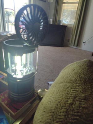 [This review was collected as part of a promotion.] This is such a handy gadget. I tried saving it for a power outage for some emergency lighting. However I ended up leaving it beside my livingroom chair. I love to turn on the fan feature when I get hot. This is cute and lightweight and would be great for camping. My only complaint is that you can't dim the light and it is very bright. You can cover part of the light to not have as much light in the room, but it is still on high.