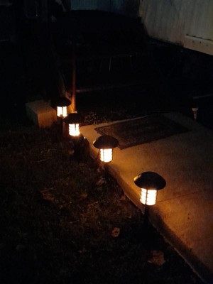 [This review was collected as part of a promotion.] I was looking to update my lights along my home. My others were old and needing replaced. These look so much better than what I had. They light up well and it comes with a remote that I can use to change the lighting. I love the flickering light option! So unique to what others have. I can also use these on tables as a lantern if I needed to. I love the solar option as well. Now I need to go get more to finish my home!