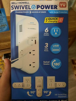 Bell + Howell Swivel Power Strip with 6 Outlets, 3 USB Ports, 180-Degree Rotation and Surge Protection