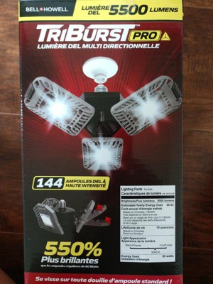 [This review was collected as part of a promotion.] This TriBurst Pro light from Bell & Howell is Excellent! I like it in my Art/Craft room & Workshop in garage. We all know how as we age our eyes are the 1st to go. This light has 5500 Lumens Led Light. It is bright & screws right into any light bulb socket. So it can be moved around to your convenience, that's what I like, its not permanent to one place. And I can finally see while painting, crafting or working on a project in the garage. It also has a 5 year warranty . Bell & Howell has always been a good brand that's been around for along time & is trustworthy!