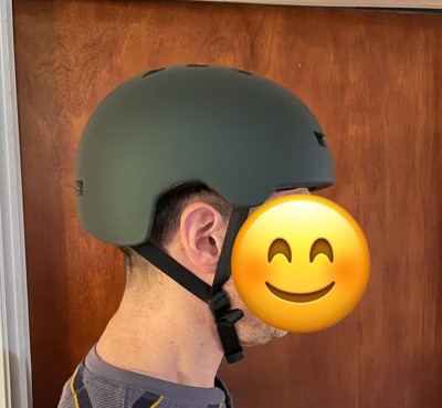 This helmet is such a fun and muted green color. It is easy to put on and take off. I like the adjustable strap. The vents are great to help with air flow. It has some cushion inside the helmet, which helps.