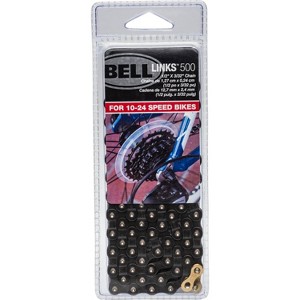 The Bell® Links™ 500 chain is the ideal choice for multi-speed derailleur-equipped bicycles with five- to eight rear sprockets. The 112-link length fits most bikes as is, and the included master link makes installation a snap. Requires the use of a chain tool, such as the Quicklink™ 350 Chain Repair Kit to remove the old chain and change the length of the replacement chain.