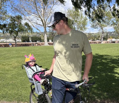 • Child bike seat attaches behind your bike seat so you can bring your little one along