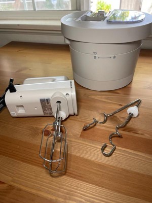 [This review was collected as part of a promotion.] I am excited to use this whenever I make buttercream icing! The covered top is perfect for preventing confectioners’ sugar getting everywhere and leaving a mess. I especially love that you can add in ingredients through a smaller hole while it runs.