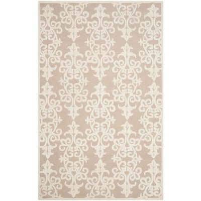 Embrace the serene beauty and sophistication of the Sand/Ivory hand-tufted area rug, a perfect addition to any room in your home. Meticulously crafted in India, this medium rectangle rug spans 5' x 8' and boasts a subtle height of 3/8 inch, promising luxurious comfort underfoot.