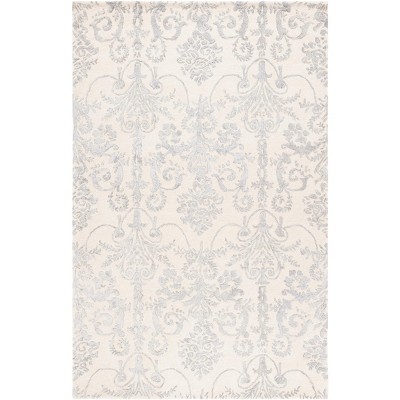 The design features a classic pattern with botanical motifs and a defined border that emphasizes symmetry and harmony. The soft grey background is complemented by the elegant ivory details that bring a subtle, yet impactful, contrast to the rug's aesthetic.