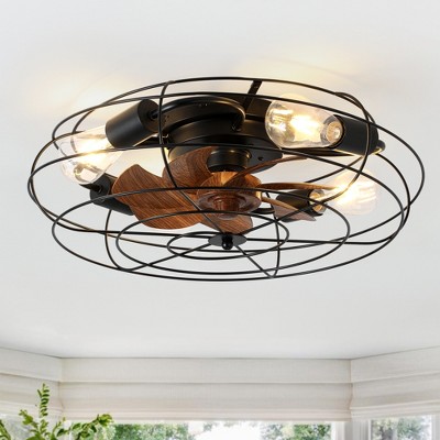 Bella Depot 19" Black Caged Ceiling Fan with Light and Remote 6-speed Reversible Fan for Bedroom Living Room