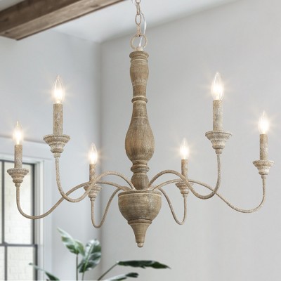 - Rustic Design: The Bella Depot chandelier combines distrssed wood cage and metal for a farmhouse look.