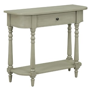 - Our console table has the handy storage and smooth finish that make it right at home in any coastal farmhouse entryway, which captures the essence of vintage style with its harmonious blend of elegance and practicality. Looks aside, it has a top drawer and an open shelf that are just right for holding storage baskets and miscellaneous things. Plus, its long, thin design sits flush to your wall, so it fits in even narrow hallways.