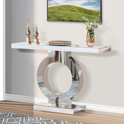 Bella Depot 39.37'' Mirror Console Table curved mirror with 2 drawers
