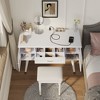 - Experience the perfect blend of contemporary elegance and timeless charm with this chic vanity table. Designed for multi-purpose use, it seamlessly transitions from a makeup vanity to a writing desk or bedside table. Safety-focused rounded corners and a sleek design ensure it complements any room decor, while its compact size makes it ideal for small spaces. Whether in the bedroom, dressing room, or study, this versatile piece is a stylish addition to your hom