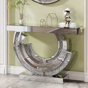 Bella Depot 42.91'' 3C Shaped Crushed Diamond Hallway Table For Hotel Mirrored Console Table