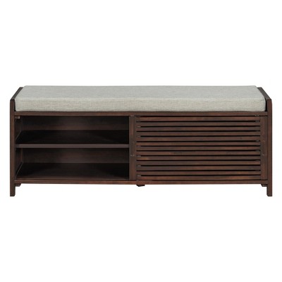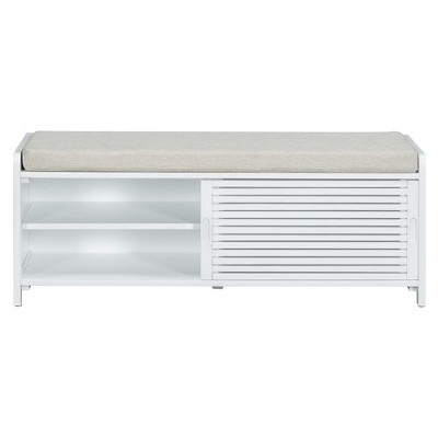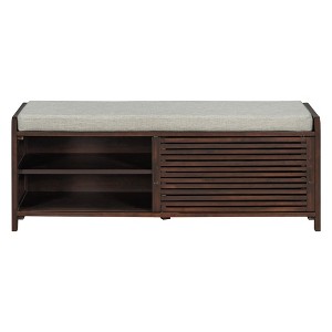 - Featuring elegant shutter-style slats, this storage bench brings a touch of classic charm to any room. Its beautifully crafted design effortlessly complements both rustic and vintage-inspired interiors, adding a sophisticated yet functional piece to your home. Available in five colors: White,Grey, Espresso, Navy, and White Washed.