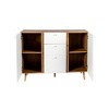 - This sideboard cabinet features 2 tiers shelf behind each door, to store all your dinning ware, tableware, books or media accessories. Full sized drawers are roomy to store infrequently used items out of sight