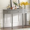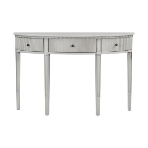 - The console table features three drawers with a vertical stripe design on their fronts, adding a touch of modern elegance. The stripes create a sleek, textured look that enhances the visual appeal and sophistication of the table, making it a striking piece in any entryway.