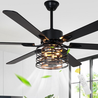 Bella Depot 52" Black Industrial Caged Ceiling Fan with Light and Remote for Dining Room Bedroom
