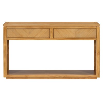 Elevate your living space with our Rustic Wooden Console Table, an elegant entryway piece designed for both style and functionality. Featuring a stunning chevron pattern and a smooth finish, this table exudes sophistication while providing the warmth of natural wood tones. Equipped with two spacious drawers, it offers ample storage for essentials like keys and mail, ensuring your space remains organized. The open lower shelf is perfect for displaying decorative items or books, making it a versatile addition to any room. Perfect for narrow hallways or behind sofas, this console table is a must-have for those seeking a blend of elegance and practicality.