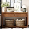 - Built with a sturdy wooden frame, this console table is designed for long-lasting use. The open lower shelf provides additional space to display decor items, books, or storage baskets, blending functionality with style. Its robust construction ensures stability, making it an ideal piece for entryways or living rooms.