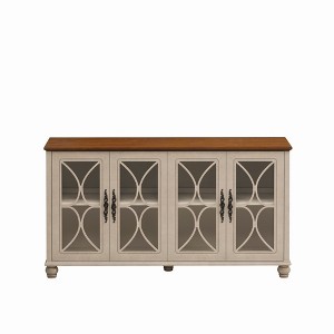 - With four tempered glass doors, this cabinet not only offers ample storage space but also allows you to showcase your favorite items. The transparency of the glass adds depth and dimension, making it perfect for displaying fine china, collectibles, or decorative pieces.