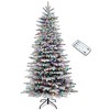 Bring festive cheer into your home with this exquisite 6.5ft Artificial Christmas Tree. Designed to mimic the enchanting appearance of a snowy mountain pine, this tree features a stunning snow-flocked finish that enhances any holiday setting. Its warm white and multicolored LED lights create an inviting ambiance, perfect for family gatherings and holiday celebrations. The convenient remote control allows for easy adjustment of light modes, brightness, and timers, ensuring your tree shines brightly throughout the season. With its hinged construction for effortless setup, you can enjoy more time celebrating and less time decorating. Experience a safe and stable holiday with flame-retardant branches and a sturdy steel base. This captivating Christmas tree is sure to be the centerpiece of your festive decor.