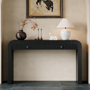 - The smooth-wooden liding drawer features a fluted front design, adding texture and visual interest. With two divided compartments, it’s idea for storing keys, letters, or small items, keeping your space tidy and organized. Drawer holds up to 26.4 lbs.