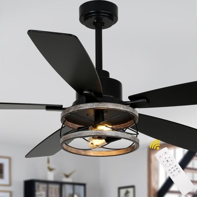 - Striking Design: The eye-catching black metal cage paired with five elegant wooden blades creates a bold statement piece that complements modern and rustic decor alike.